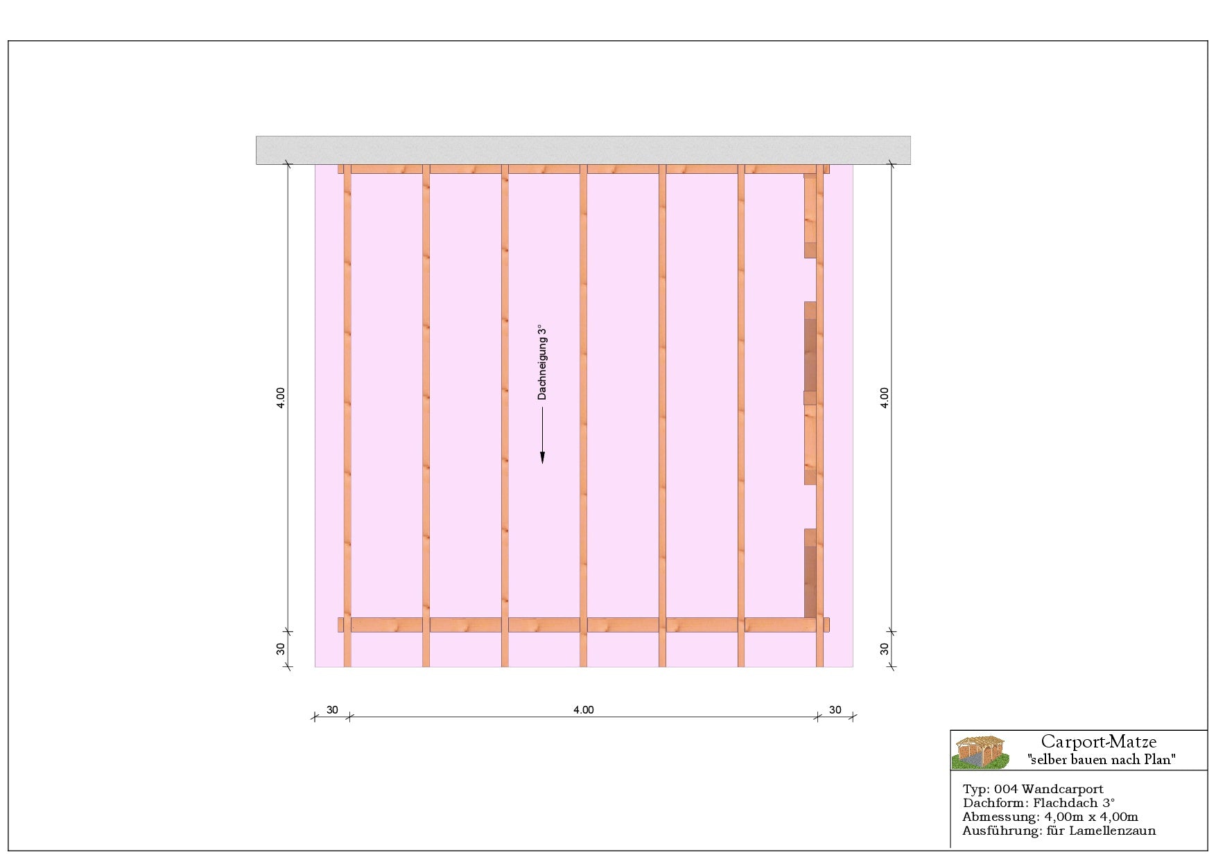 Dieses E-Book (PDF) liefert dir einen fundierten Bau- & Fertigungsplan für den Eigenbau eines Einzelcarports mit Flachdach. Klare Schritt-für-Schritt-Anleitungen und präzise Zeichnungen unterstützen dich bei Zuschnitt, Montage und Ausrichtung der Bauteile. Die Pfostenabstände sind so gewählt, dass Wände mit handelsüblichen Lamellenzäunen geschlossen werden können. Die Pläne basieren auf über 20 Jahren Erfahrung im Holzbau.